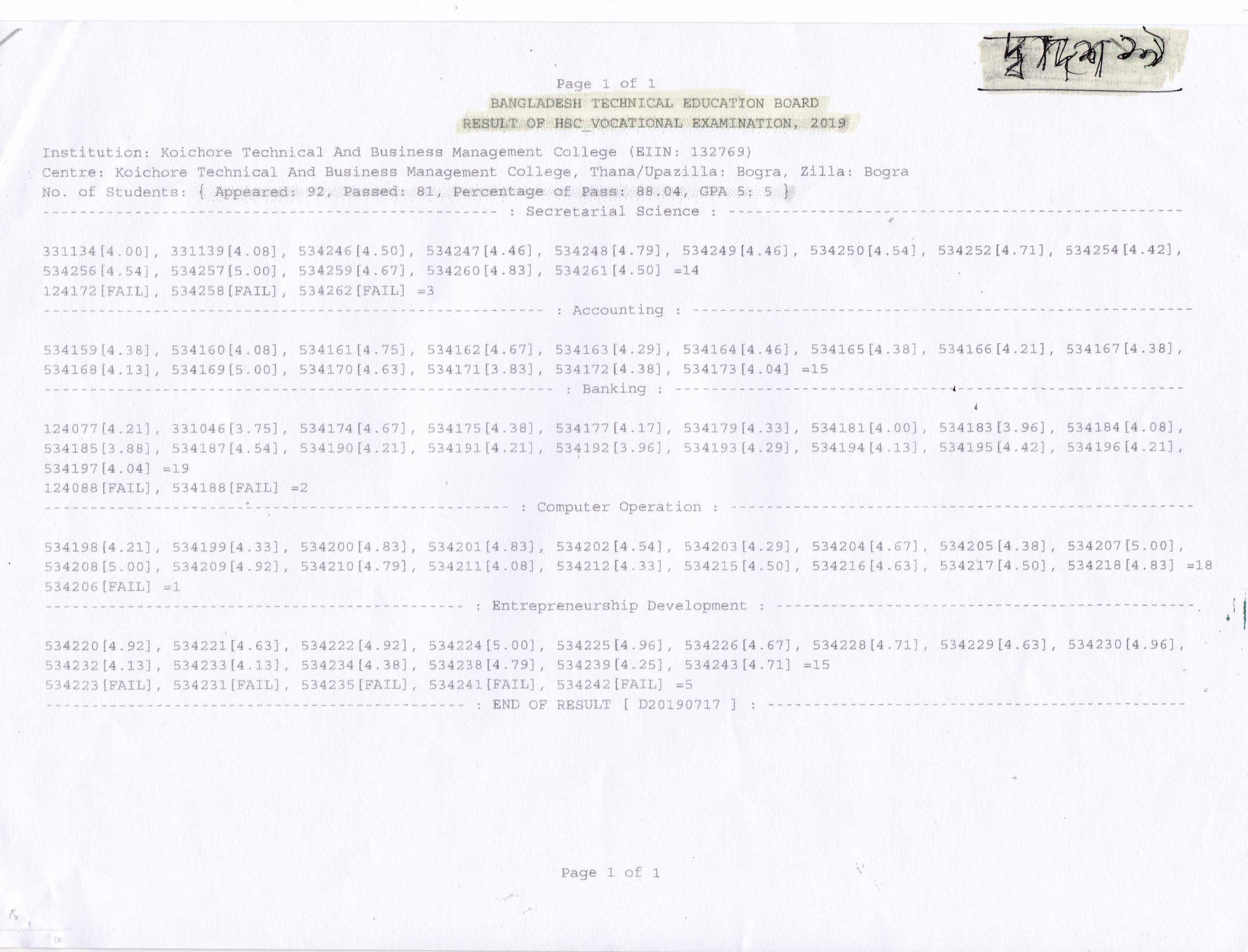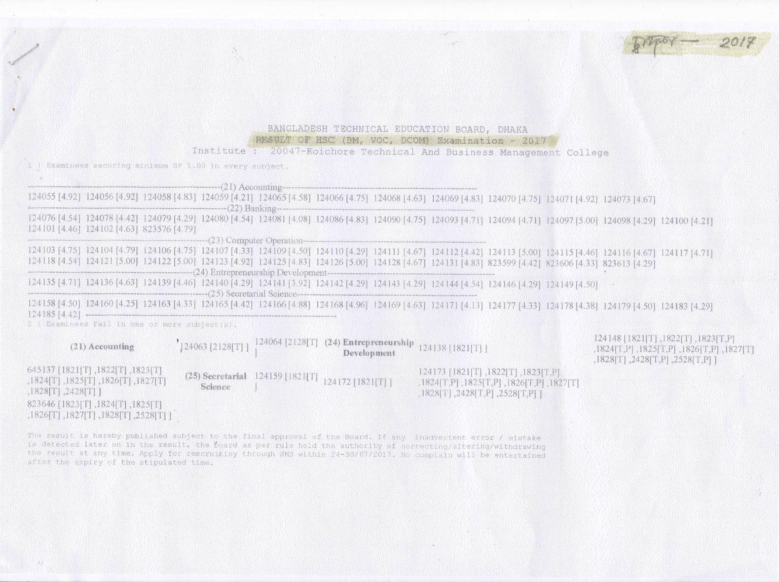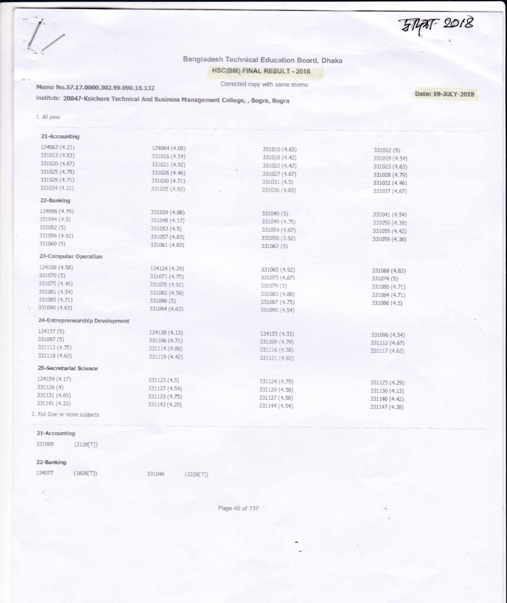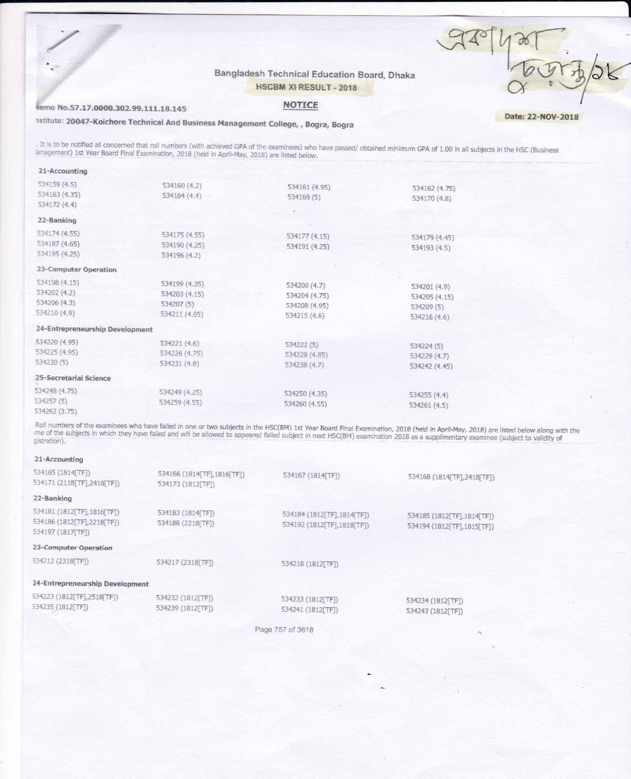 উপবৃত্তি প্রাপ্ত শিক্ষার্থীর তালিকা
